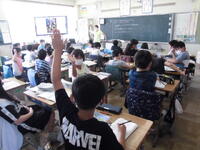 音読をしています。 背筋がピンと伸びています。 こちらのクラスは漢字の学習です。土曜日の「土」、「つち」という声が聞こえます。