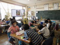 タブレットを使って、絵を描いたり、画像を撮ったりして こちらのクラスは算数です。 こちらのクラスは国語です。