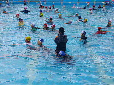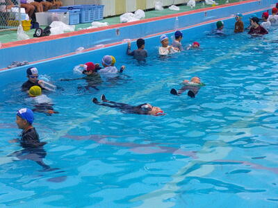 力を抜いて、浮くもの(ペットボトル等)につかまる体験を通して、水の事故から命を守ることについて学びました。