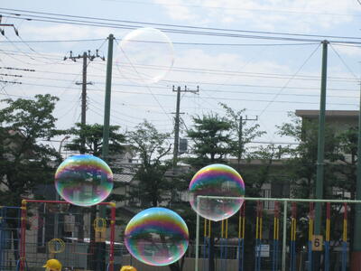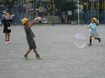 はじめは、苦戦していた子も、慣れてくるとコツをつかみ、たくさんの大きなしゃぼん玉を作ることができるようになりました。