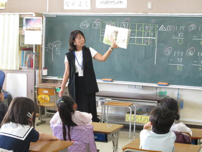 ボランティアの方の調整ができ、今学期は2学年ずつ読み聞かせを行っています。