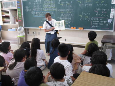 市川市では、年に数回、近隣の中学校のALTの先生による外国語の学習があります。