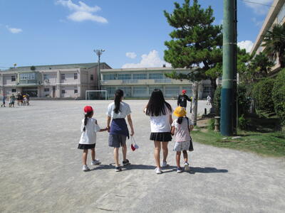 ペアのお兄さんお姉さんが1年生にやさしく声をかけ、一緒に遊ぶ姿はとても微笑ましかったです。