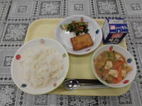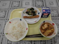 いかのかりん揚げ 四川豆腐 小松菜の中華和え ごはん 牛乳