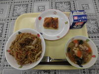 5月17日 今日の給食は「焼きそば」 新作のデザートもありました。