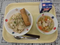 たけのこピラフ ひじき入り春巻き 白菜のスープ煮 牛乳