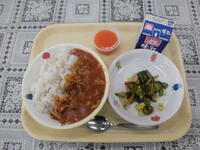 5月スタートの給食はハッシュドポークでした。なんと「ルウ」から手作りです。