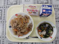 7月6日 今日の給食は「なす入り肉みそ丼」です