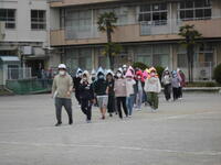 6年生はさすがです。一番に避難完了しました。
