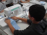 ミシンの練習が始まりました。練習布を使って特訓です。