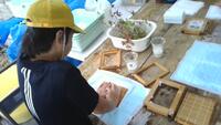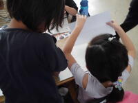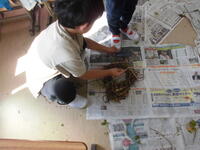 こちらのクラスは、朝顔のつるでリースづくり みんな一生懸命です。 中学生がよくお世話をしてくれました。