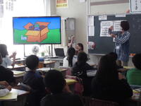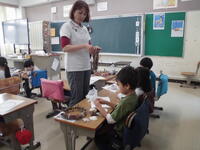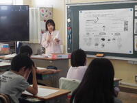 食育の授業 2回目です。栄養士と一緒に学習です。前回栄養バランスも考えることや色合いなどを踏まえて献立を作成していること学習しました。