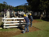 しばらく校庭の丸太の遊具が使えずにいましたが、業者の方に修繕していただき使えるようになりました。