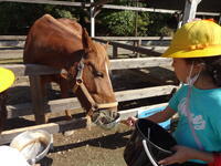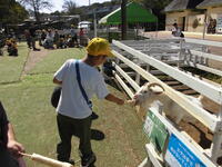 晴天に恵まれました。餌やり体験では、初めはおっかなびっくりの手つきだった子も動物に慣れてかわいがって、餌やりをしました。