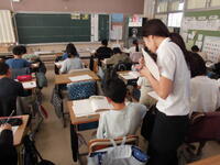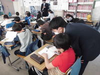 第三中学校の2年生が職場体験で1年生の学習に参加しました