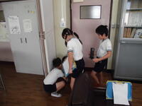 最初に避難し始めて校庭に出たのは1年生でした。半年前は一番最後でしたので、すごい成長ぶりです。 職員も救急通報の訓練・指導を受けました。
