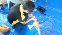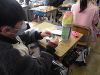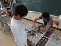 ボンドを使ってくっつけます。なかなかくっつけにくいのはホットボンドで付けますが、熱いので、教師が行います。