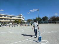 こちらのクラスは、外に集まって何の学習でしょうか?