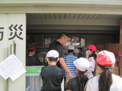 今日は、地域防災課の方に本校の避難所開設の際に使用する防災倉庫の中身について教えていただきました。
