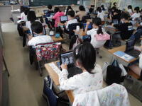 鍵盤ハーモニカで演奏している学級もあれば、鈴やカスタネットを使って演奏している学級もあいました。
