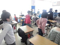 こちらは3組の様子 6年生を送る会の出し物の練習です。いろんな振りを行っていました。