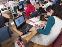 タブレットの学習を行っています。タイピングの練習をする子。画像を検索する子。プログラミングを行う子。だいぶ上達しました。