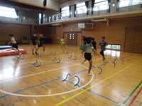 今年4年ぶりに、市の陸上大会が開催されることに伴い、走り幅跳びの体験会を体育館で行いました。