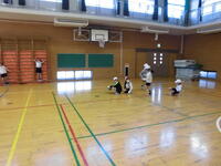 体育館でキックベースを行っています。蹴るのがだいぶ上手になってきました。