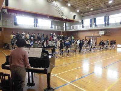 鍵盤ハーモニカの練習をしていました。教室の後ろから覗いたら、整った姿がきれいだったので、写真を撮りました。