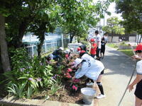 学校の花壇もリニューアル M先生とI先生と一緒に栽培委員会の皆さんが植え替えをしました。日日草とインパチェンスです。