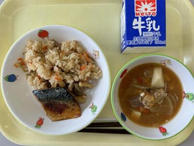 とりめし・牛乳・サバの生姜焼き・みそけんちん汁