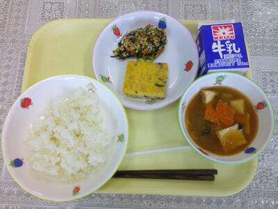 ごはん 牛乳 ひき肉とチーズの卵焼き 冬瓜のみそ汁 納豆和え