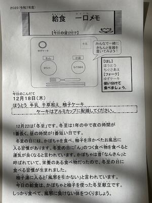 ほうとう・牛乳・千草和え・柚子ケーキ
