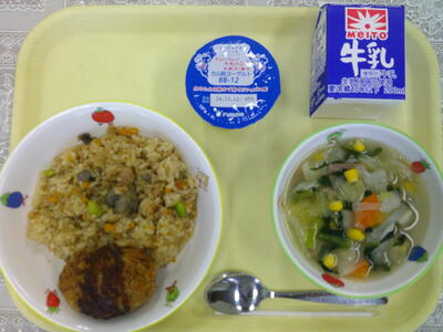 ツナピラフ 牛乳 キャベツメンチ 野菜スープ ヨーグルト
