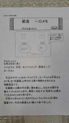 これから寒い季節になっていくと、カゼ、インフルエンザなど、病気がはやってきます。今日の「ヨーグルト」にある乳酸菌もそうですが、野菜スープなど身体を温めながら栄養をたくさんとり、病気に負けない体をつくっていきたいですね。