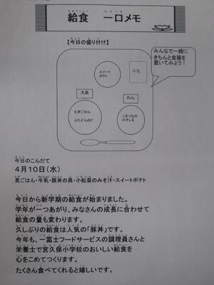 (本日は給食の量が成長に合わせて変わることと、食器の置き方です)