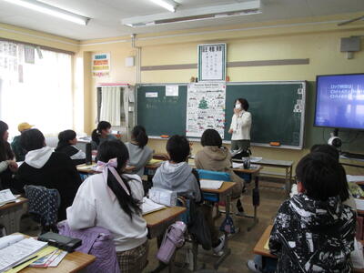 6年生が外国語の時間に「クリスマスすごろく」に取り組みました。
