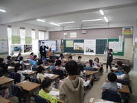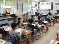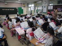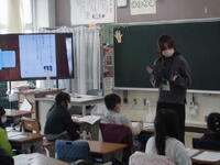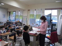 図画工作「絵」の作品鑑賞をしているクラス。 家庭科「ミシン」初めてのミシン