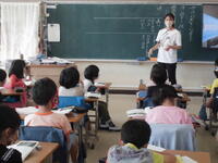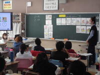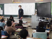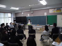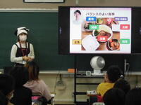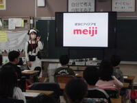 明治の方に来ていただき、食育の授業を行いました。骨の成長や体を作るためにバランスよい食事が必要ということもお話しいただきました。
