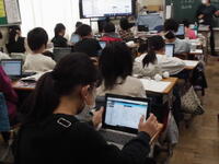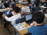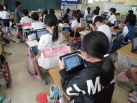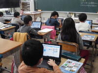 タブレットを使って、絵を描いたり、画像を撮ったりして こちらのクラスは算数です。 こちらのクラスは国語です。