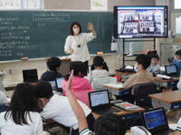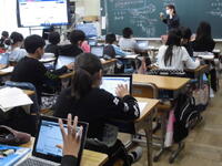 こちらのクラスはタブレットを使って、自分の考えをまとめ こちらのクラスは、自分で調べたことをグループで共有できる