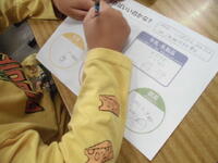1年生が数え棒を使って、形づくりをしていました。旗や風車・・・何本使ったその形はできたのでしょうか?