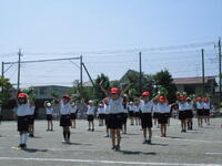 3年生は、どこかの〇〇音頭のようです。 4年生も広い校庭で、並び方や場所の確認からスタートです。