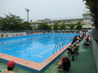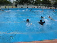 1年生は 「水泳」ではなく「水あそび」 水の中で歩いたり、顔をつけたり、もぐったり 時には浮いて漂ったりして、水に慣れていくのが目的です。