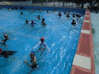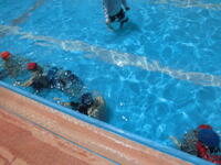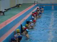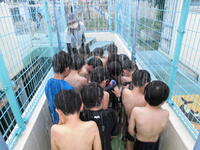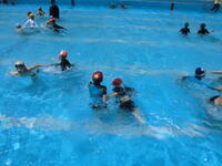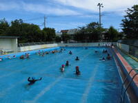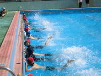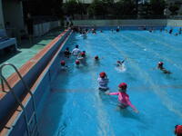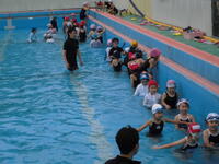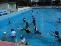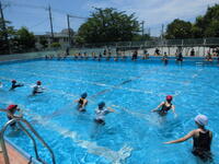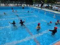 1年生は 「水泳」ではなく「水あそび」 水の中で歩いたり、顔をつけたり、もぐったり 時には浮いて漂ったりして、水に慣れていくのが目的です。