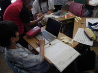 図鑑で生き物のことを調べている学級 ゴムの力を実験で調べている学級 道徳の学習に励んでいる学級