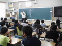 明治の方に来ていただき、食育の授業を行いました。骨の成長や体を作るためにバランスよい食事が必要ということもお話しいただきました。