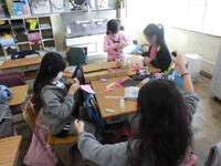 こちらも芸術の秋でしょうか?  家庭科の小物づくりに没頭中です。 ボタンを効果的に使っている子もいます。