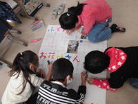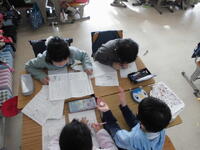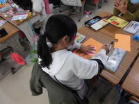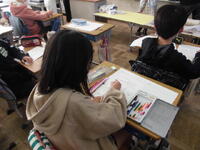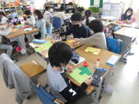 こちらは生活科 町探検の発表準備です。 こちらのクラスは、図画工作 季節のグリーティングカードを作っています。