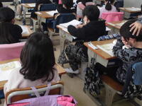 こちらのクラスは算数です。みんな引き算の決まり見つけたかな? こちらのクラスは、国語、挿絵を見ながら、お話の順番を考えます」
